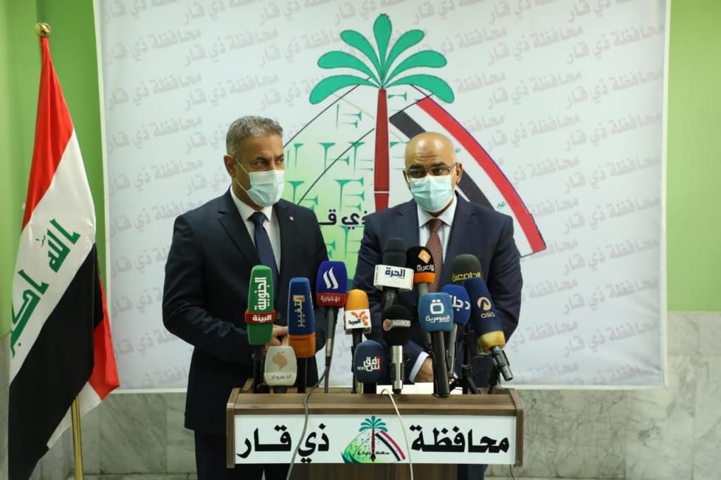 أكد وزير التعليم العالي والبحث العلمي الأستاذ الدكتور نبيل كاظم عبد الصاحب أن وزارة التعليم ماضية باستكمال البنى التحتية في جامعتي ذي قار وسومر والكليات والمعاهد التقنية ويعلن الموافقة على إطلاق برامج الدراسات العليا في تخصص إيكو القلب وتخصص التمريض.ولدى زيارته محافظة ذي قار ولقائه محافظها السيد الدكتور أحمد غني الخفاجي بحضور رؤساء جامعات ذي قار وسومر والتقنية الجنوبية ومساعدي رؤساء الجامعات وعمداء الكليات بارك معالي الوزير للسيد المحافظ مهمته في إدارة دفة المحافظة في هذا التوقيت الاستثنائي وهنأ أبناء ذي قار الكرام بمناسبة شهر رمضان المبارك والطبقة العمالية الكادحة بمناسبة عيد العمال العالمي.من جهته أعرب السيد المحافظ عن حفاوته الكبيرة بهذه الزيارة التي تترجم المتابعة الحكومية لمحافظة ذي قار ومؤسساتها الى برامج فعلية قابلة للتنفيذ على أرض الواقع.وفي هذا السياق أكد وزير التعليم أن زيارة وفد وزارة التعليم العالي الذي ضم مستشار الوزارة الدكتور علاء عبد الحسن عطية ومدير الدائرة الإدارية والمالية الدكتور أسعد غني جهاد ومدير دائرة الإعمار والمشاريع الدكتور حيدر مكية جاءت ضمن توجيهات السيد رئيس مجلس الوزراء الأستاذ مصطفى الكاظمي لمتابعة وزيارة المحافظات كافة لافتا الى أن محافظة ذي قار تحظى بأولوية حكومية قصوى ولاسيما أن مؤسسات التعليم العالي في هذه المحافظة يمكن أن تسهم إسهاما فاعلا في دعم المحافظة والنهوض بمشاريعها وتقديم الرؤى والمعالجات التي تصب في خدمة المجتمع.واستعرض رؤساء جامعات ذي قار وسومر والتقنية الجنوبية رؤاهم وتصوراتهم في مجال تطوير المؤسسات الجامعية والاحتياجات الأكاديمية واللوجستية.وعقد وزير التعليم العالي ومحافظ ذي قار مؤتمرا صحفيا في مبنى المحافظة أكد خلاله أن وزارة التعليم ماضية بصياغة الحلول المتعلقة باستكمال البنى التحتية وتقديم الخدمات التعليمية في ضوء التحديات التي تقتضي توسيع واستحداث الأبنية الجامعية.وأعلن معالي الوزير خلال المؤتمر الصحفي اتفاق المجتمعين بحضور رئيس مركز الناصرية للقلب على مقررات مشتركة مع المحافظة هي الآتي:- الموافقة على إطلاق برامج الدراسات العليا على مستوى الدبلوم في تخصص إيكو القلب وتخصص التمريض.