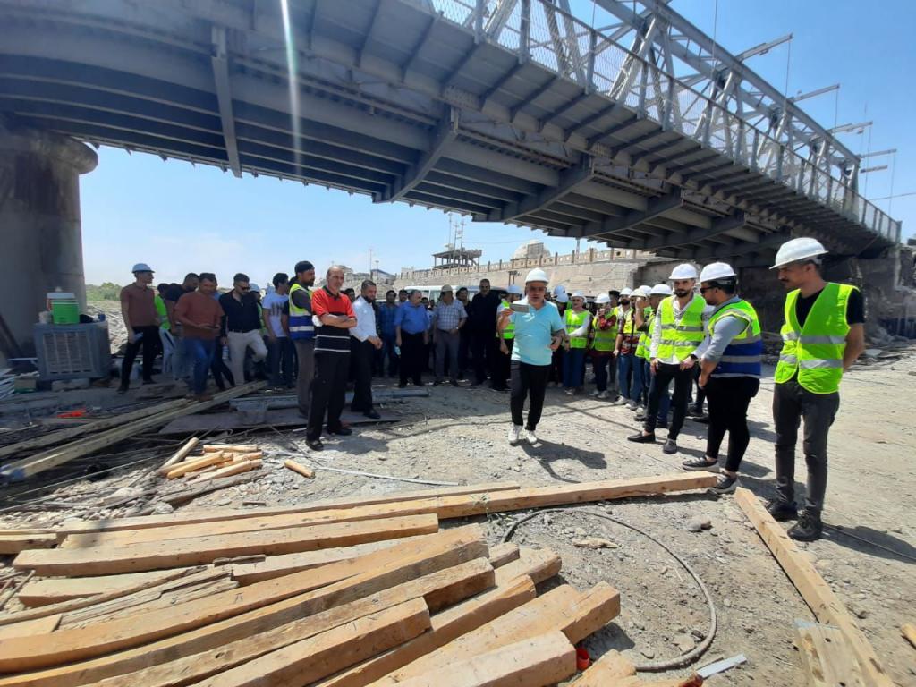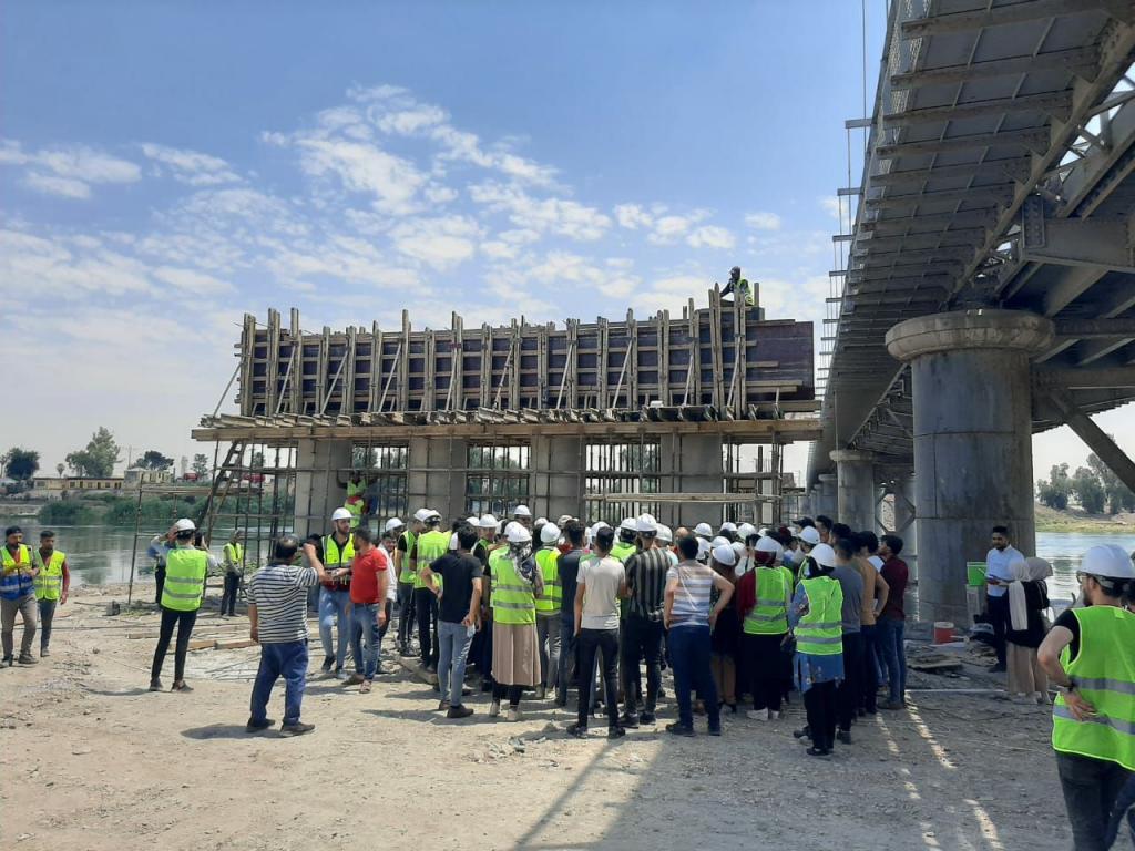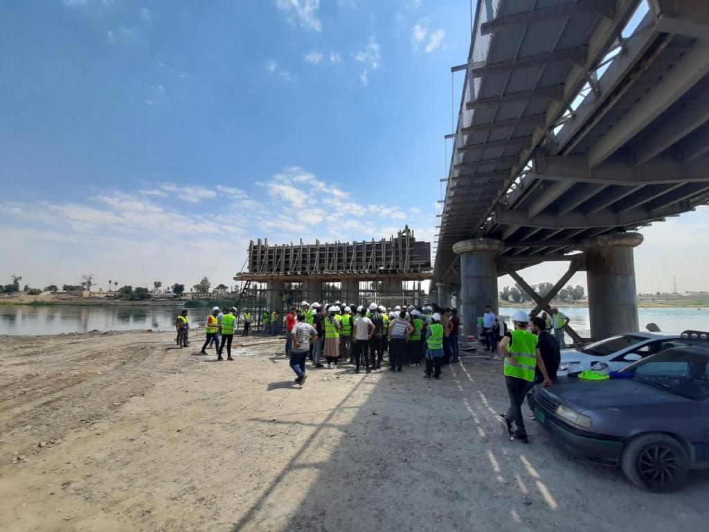 طلبة قسم الهندسة المدنية يجرون زيارة علمية الى مشروع انشاء الجسر الحديدي المحاذي للجسر القديم في الجانب الايمن من المدينة