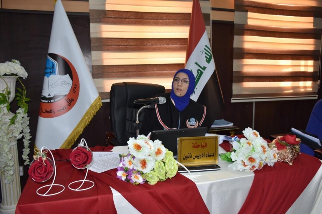 ناقشت كلية التمريض في جامعة الموصل رسالة الماجستير الموسومة (وبائية وعوامل الاختطار لدى النساء بعمر الانجاب المصابات بالاخماج المهبلية في مخيم حسن – شامي)، يوم الاحد 22 آب 2021، في قاعة المناقشات بالكلية.