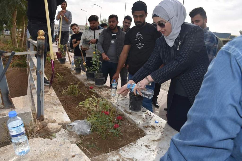 كلية علوم البيئة وتقاناتها تقيم حملة للتشجير في حدائقها