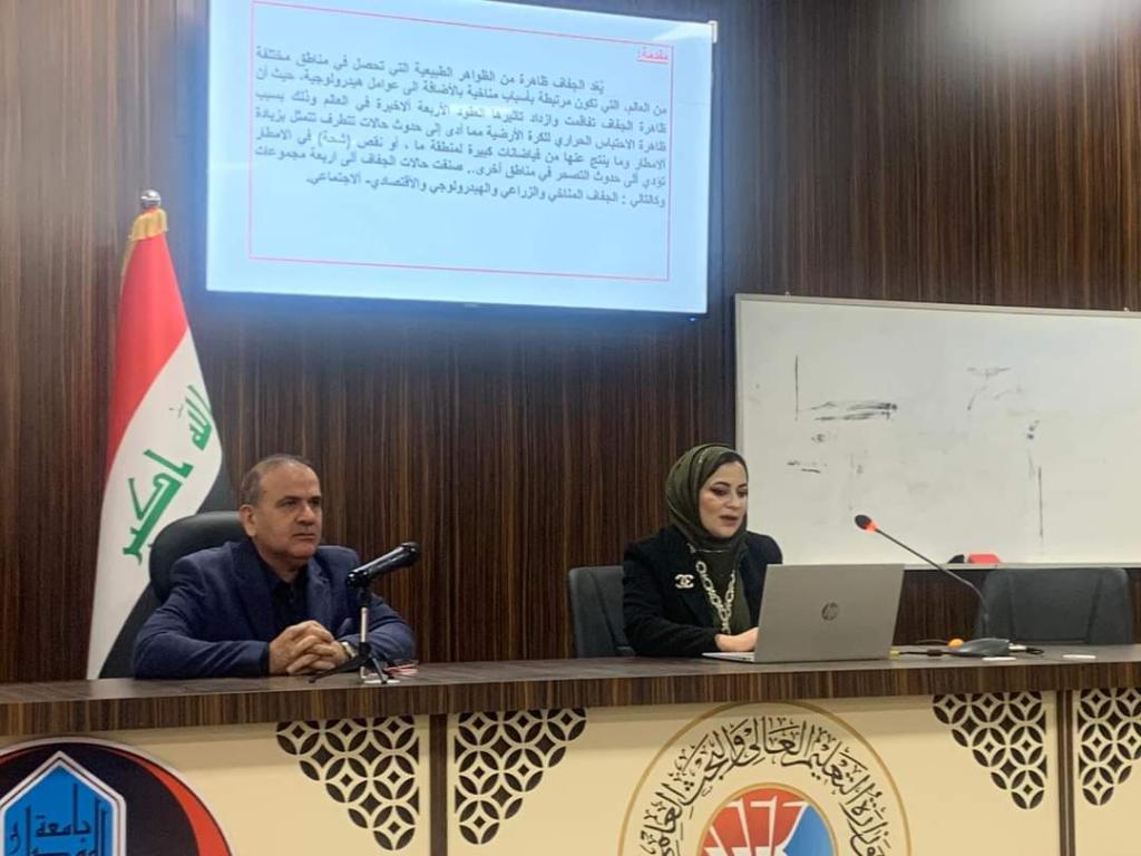 أقامت كلية علوم البيئة وتقاناتها بجامعة الموصل دورتها التدريبية الموسومة ” مخاطر الجفاف وسبل الحد من إنتشاره” يوم الأحد ١٨ _١٩ كانون الأول ٢٠٢٢،