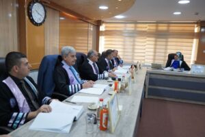 من الأستاذ الدكتور عبد الناصر علك حافظ من وزارة التعليم العالي والبحث العلمي، والأستاذ المساعد الدكتور بسام منيب علي، والأستاذ المساعد الدكتور أحمد هاني محمد، والأستاذ المساعد الدكتورة زهراء غازي ذنون، وعضوية وإشراف الأستاذ الدكتور ميسر إبراهيم الجبوري.