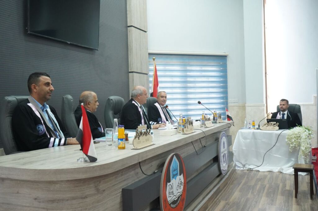 ترأس لجنة المناقشة الأستاذ الدكتور رعد عدنان رؤوف , وعضوية كل من الأستاذ المشارك الدكتور رامي محمد عقله الدويري من الجامعة الأردنية /كلية الأعمال _ عبر الفضاء الإلكتروني الخارجي , و الاستاذ المساعد الدكتور رمضان محمود رمو , وبإشراف وعضوية الأستاذ الدكتور علاء عبد السلام يحيى الحمداني .