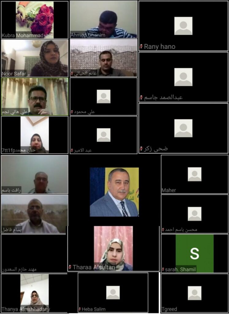 اجتمعت لجنة الارشاد في قسم نظم المعلومات الإدارية والمتمثلة بالمدرسة ندوى خزعل رشاد والمدرس المساعد عبدالله عبدالحق خميس يوم الاربعاء الموافق 13-5-2020 وبحضور الاستاذ المساعد الدكتور محمد مصطفى حسين رئيس القسم مع طلبة المرحلة الثانية وعبر منصة Google Meet وقد تضمنت مناقشة عدة موضوعات كان من أهمها:1.حث الطلبة على الالتحاق بالصفوف الالكترونية والتأكيد على أهمية متابعة المحاضرات والالتزام بالتعليم الالكتروني.2. تحديد اهم الصعوبات والمشاكل التي تعترض طلبة القسم.3. التأكيد على الالتزام بأوقات المحاضرات الإلكترونية المعلنة في الجداول الأسبوعية.4. توضيح الفقرات الخاصة بالطلبة والمقررة من قبل وزارة التعليم العالي والبحث العلمي.____________________________