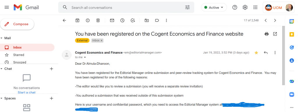 اختيار الدكتور مفيد ذنون يونس محكما لبحوث المجلة Cogent Economics and Finance website وهي ضمن دار النشر العالمية Tylor&Francis .