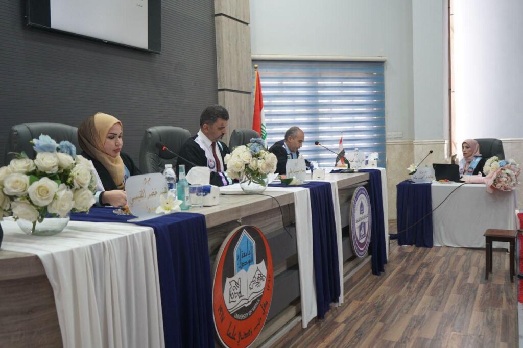 ترأس لجنة المناقشة الأستاذ الدكتورة الآء حسيب عبد الهادي الجليلي , وبعضوية كلاً من الأستاذ المساعد الدكتور عامر اسماعيل عبد الله حديد والأستاذ المساعد الدكتورة ندى اسماعيل جبوري من جامعة بغداد والأستاذ المساعد الدكتورة زهراء احمد محمد توفيق والاستاذ المساعد الدكتور أحمد حسين حسن وعضوية وإشراف الأستاذ المساعد الدكتور عادل محمد عبد الله .