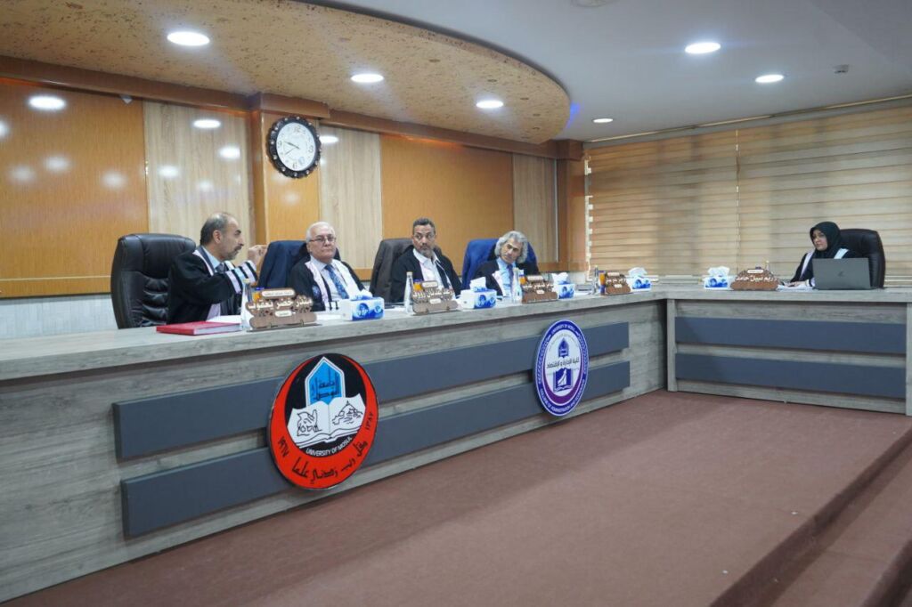 ترأس لجنة المناقشة الأستاذ الدكتور بكر ابراهيم محمود من الجامعة المستنصرية , وبعضوية كل من الأستاذ الدكتور رزكار عبد الله صابر من جامعة صلاح الدين/اربيل والأستاذ المساعد الدكتورة كبرى محمد طاهر حمودي والأستاذ المساعد الدكتور علي مال الله عبد الله والأستاذ المساعد الدكتور طه احمد حسن وعضوية وإشراف الأستاذ الدكتور زياد هاشم يحيى .