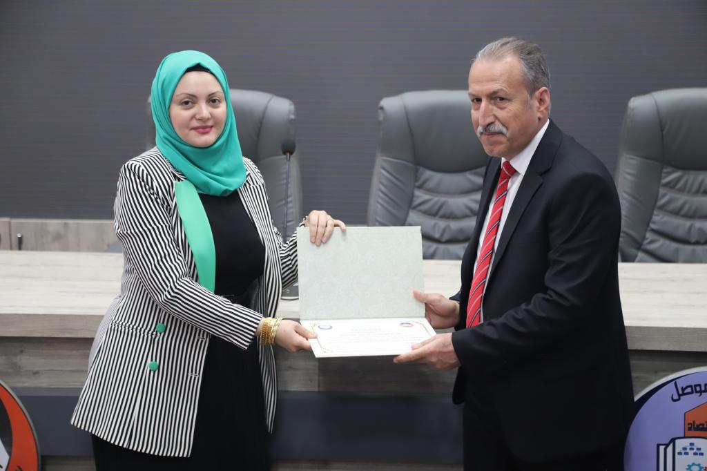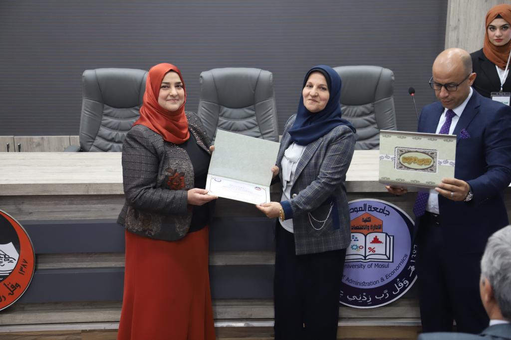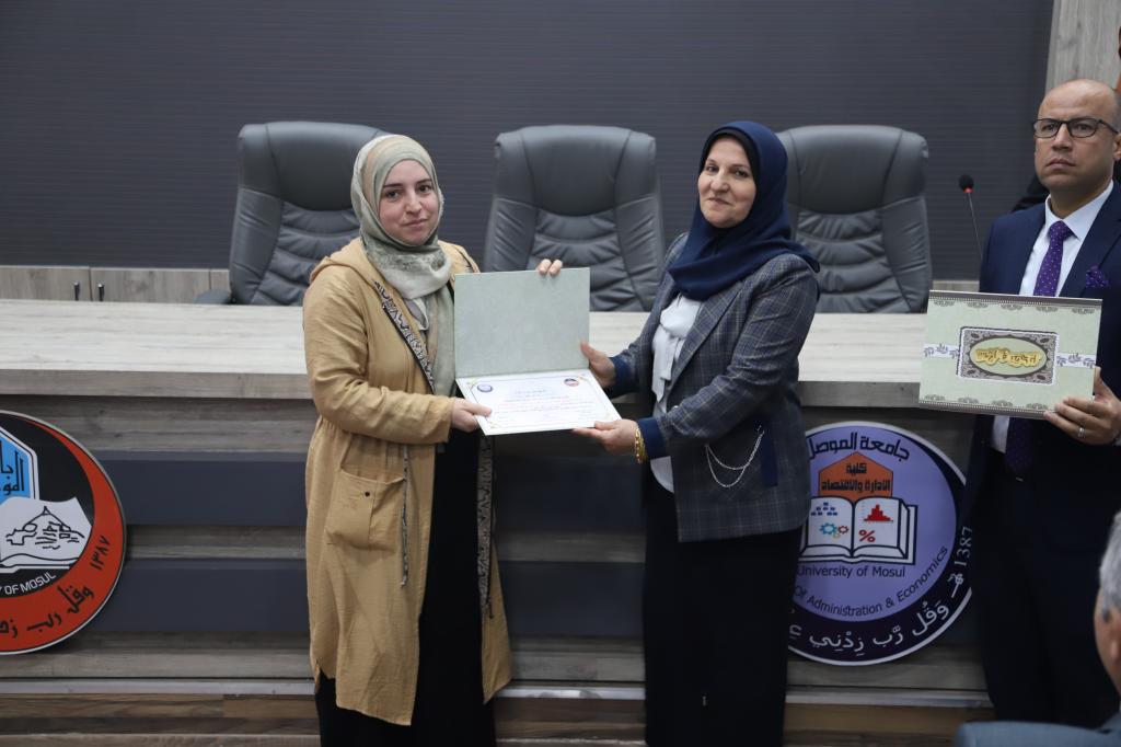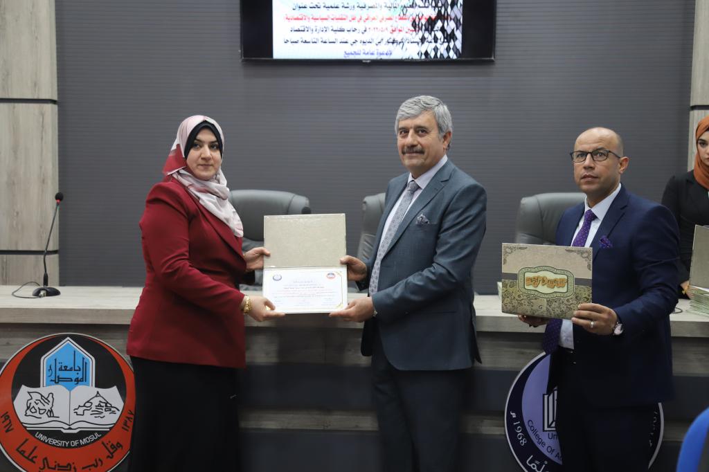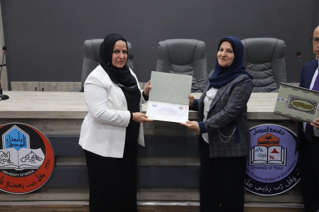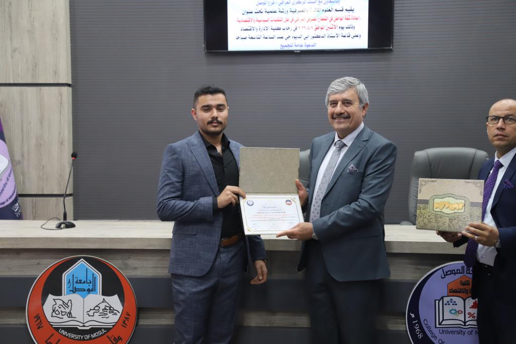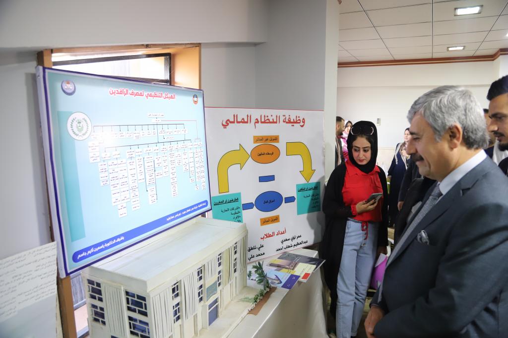 برعاية السيد رئيس جامعة الموصل الأستاذ الدكتور قصي كمال الدين الاحمدي وبالتعاون مع البنك المركزي العراقي/ فرع الموصل وبأشراف السيد عميد كلية الإدارة والاقتصاد الأستاذ الدكتور ثائر احمد سعدون السمان، اقام قسم العلوم المالية والمصرفية ورشة عمل بعنوان (إعادة ثقة المواطن في القطاع المصرفي العراقي في ظل التقلبات السياسية والاقتصادية)، وذلك في يوم الاثنين الموافق 9 أيار 2022 في قاعة الأستاذ الدكتور ابي الديوةجي عند تمام الساعة التاسعة صباحا، حضر فيها السيد عميد الكلية والسادة معاوني العميد للشؤون العلمية والإدارية ورؤساء الأقسام العلمية وممثلة المدير العام للبنك المركزي العراقي/ فرع الموصل (السيدة ايمان عبدالقادر علي)، فضلا عن مشاركة حضور عدد كبير من مدراء ومندوبي المصارف في محافظة نينوى الى جانب حضور لفيف من طلبة الدراسات العليا والاولية، وخلال جلسات الورشة تم استعراض اهم محاورها من خلال تسليط الضوء على دور البنك المركزي العراقي في دعم الثقة بالقطاع المصرفي ومساهمة المصارف في نشر الوعي المصرفي وتعزيز الثقة المصرفية، فضلا عن مناقشة الواقع السياسي والاقتصادي وانعكاساته في البيئة المصرفية العراقية، وتم مناقشة خمسة أوراق عمل من اصل أربعة وعشرون ورقة قدمت للورشة، ومن بعدها تمت افتتاح المعرض الفني للأنشطة المشتركة بين طلبة قسم العلوم المالية والمصرفية والبنك المركزي العراقي/ فرع الموصل، هذا وختمت الورشة بتقديم الشهادات التقديرية على السادة المشاركين بأوراق العمل وفي اعداد الورشة.
