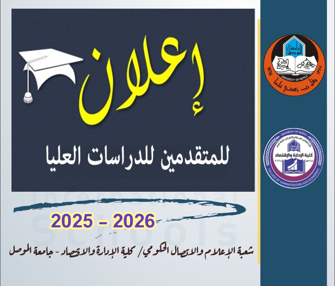 تعلن كلية الإدارة والاقتصاد – جامعة الموصل إلى جميع الطلبة المقبولين في برامج الدراسات العليا بكافة الاختصاصات للعام الدراسي 2025-2026، عن ضرورة حضور الاجتماع المقرر [إقرأ المزيد]