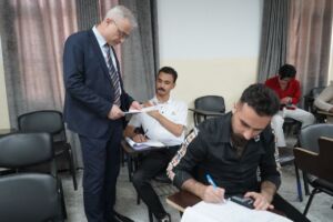 وقد تفقد السيد عميد الكلية الأستاذ الدكتور سنان زهير محمد جميل القاعات الامتحانية، يرافقه السيد المعاون العلمي والسيد المعاون الإداري، للوقوف ميدانياً على مجريات العملية الامتحانية، والاطلاع على طبيعة الأسئلة ومدى ملاءمتها للمقررات الدراسية، إلى جانب متابعة تهيئة البيئة المناسبة لأداء الطلبة لامتحاناتهم بكل سلاسة وانسيابية.