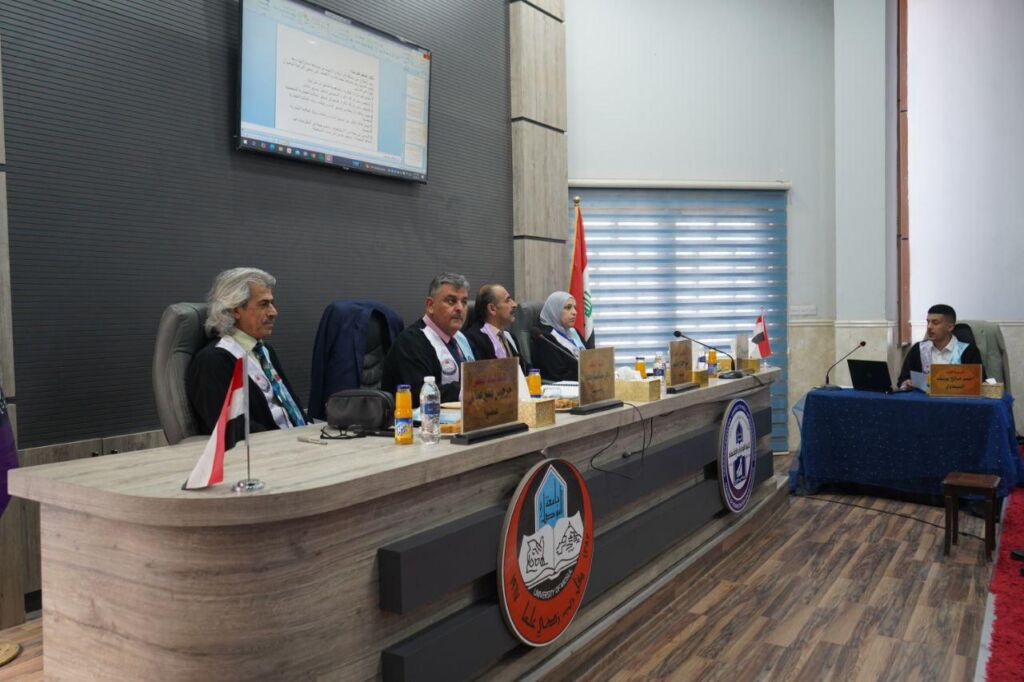 ترأس لجنة المناقشة الأستاذ الدكتور عمر علي اسماعيل وبعضوية كلاً من المدرس الدكتور علي وليد حازم وعضوية وإشراف الأستاذ المساعد الدكتور رغيد ابراهيم اسماعيل .