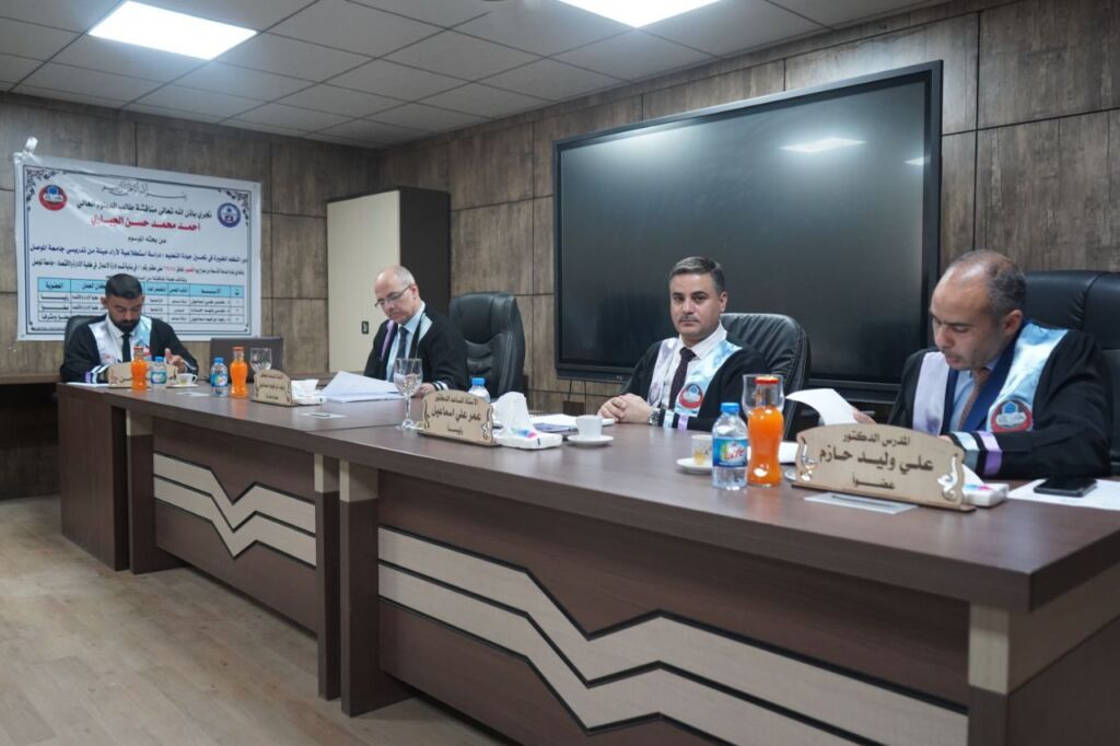 ترأس لجنة المناقشة الأستاذ الدكتور علي عبد الستار الحافظ وبعضوية كلاً من الاستاذ المساعد الدكتور أحمد هاني محمد وعضوية وإشراف الأستاذ المساعد الدكتور عمر علي إسماعيل .