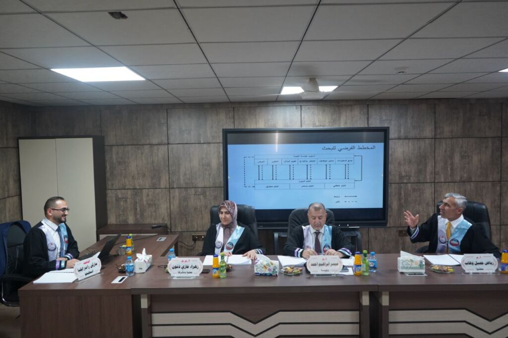 ترأس لجنة المناقشة الاستاذ المساعد الدكتورة زهراء غازي ذنون وبعضوية كلاً من الاستاذ المساعد الدكتور رغيد ابراهيم اسماعيل وعضوية وإشراف الاستاذ المساعد السيد رياض جميل وهاب .