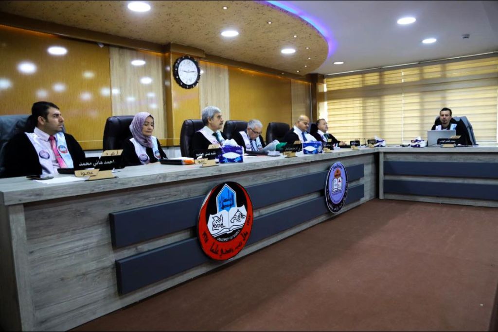ترأس لجنة المناقشة الأستاذ الدكتور خالد غازي التمي وبعضوية كلاً من مدرس دكتور عبد الرحمن زهير عبد وعضوية واشراف مدرس دكتورة رباب عدنان شهاب .