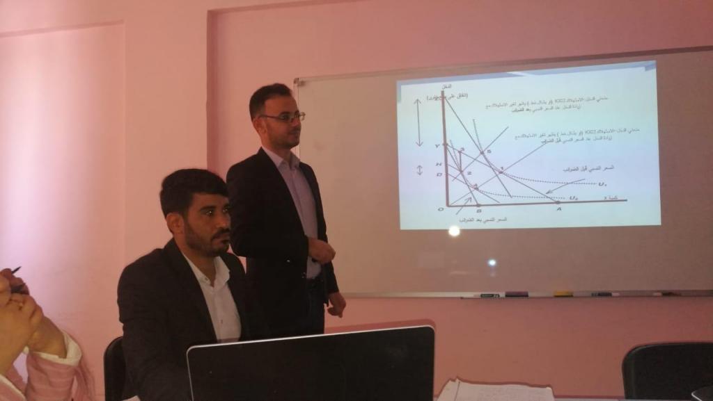 ضمن الانشطة العلمية لقسم الاقتصاد لطلبة الدكتوراه في قسم الاقتصاد الكورس الاول للعام الدراسي ٢٠١٩ – ٢٠٢٠ في يوم الإربعاء الموافق ١٣/١١/٢٠١٩ من محاضرة المالية العامة وبإشراف الاستاذ الدكتور هاشم محمد عبد الله العركوب قدم كل من الطالبان