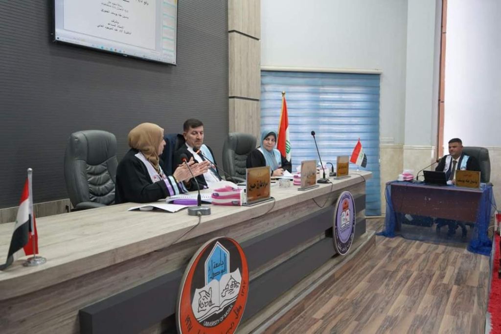 يوم الاثنين الموافق 4/ 12/ 2023 الساعة 10 صباحاً على قاعة المناقشات 1 في مبنى عمادة الكلية والتي حضرها عدد من تدريسيي وطلبة الكلية وبعض المختصين …