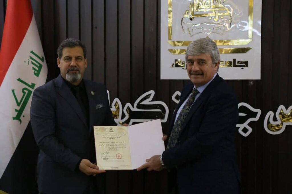 تكريم عميد كلية الإدارة والاقتصاد الأستاذ الدكتور ثائر أحمد سعدون السمان بدرع التميز والإبداع من رئيس جامعة المستقبل في الحلة…