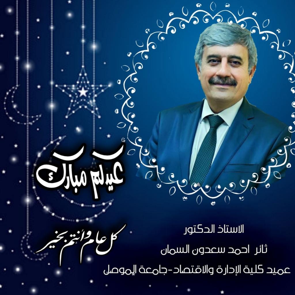 أتقدم بأصدق التهاني واطيب الأمنيات الى جميع منتسبي جامعة الموصل عموماً وكليتنا الحبيبة خصوصاً، وطلبتنا الأعزاء بمناسبة حلول عيد الفطر المبارك..سائلين الباري عز وجل ان يعيده على الجميع بتمام الصحة والعافية وان يرفع عنا شر الوباء , وكل عام وانتم بألف خيرالاستاذ الدكتورثائر احمد سعدون السمانعميد كلية الادارة والاقتصاد_جامعة الموصل