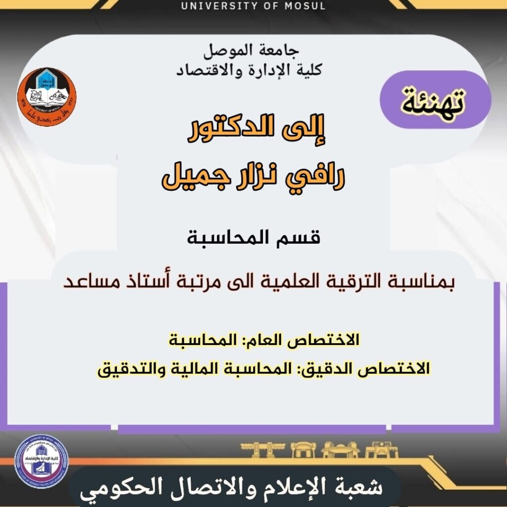 تهنئة .. ترقية علمية الى مرتبة استاذ مساعد للدكتور رافي نزار جميل