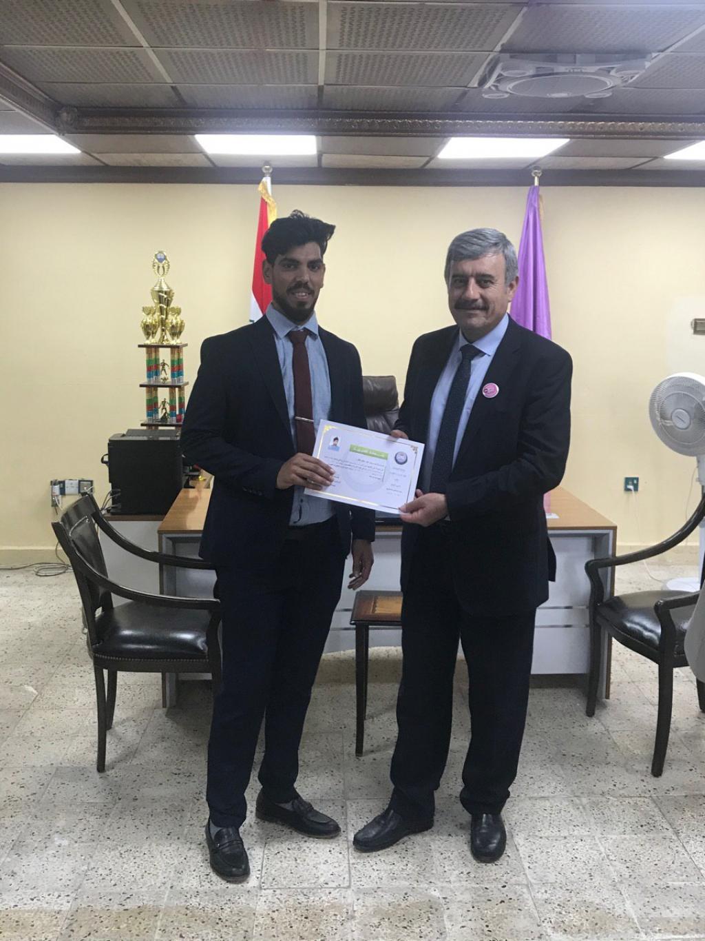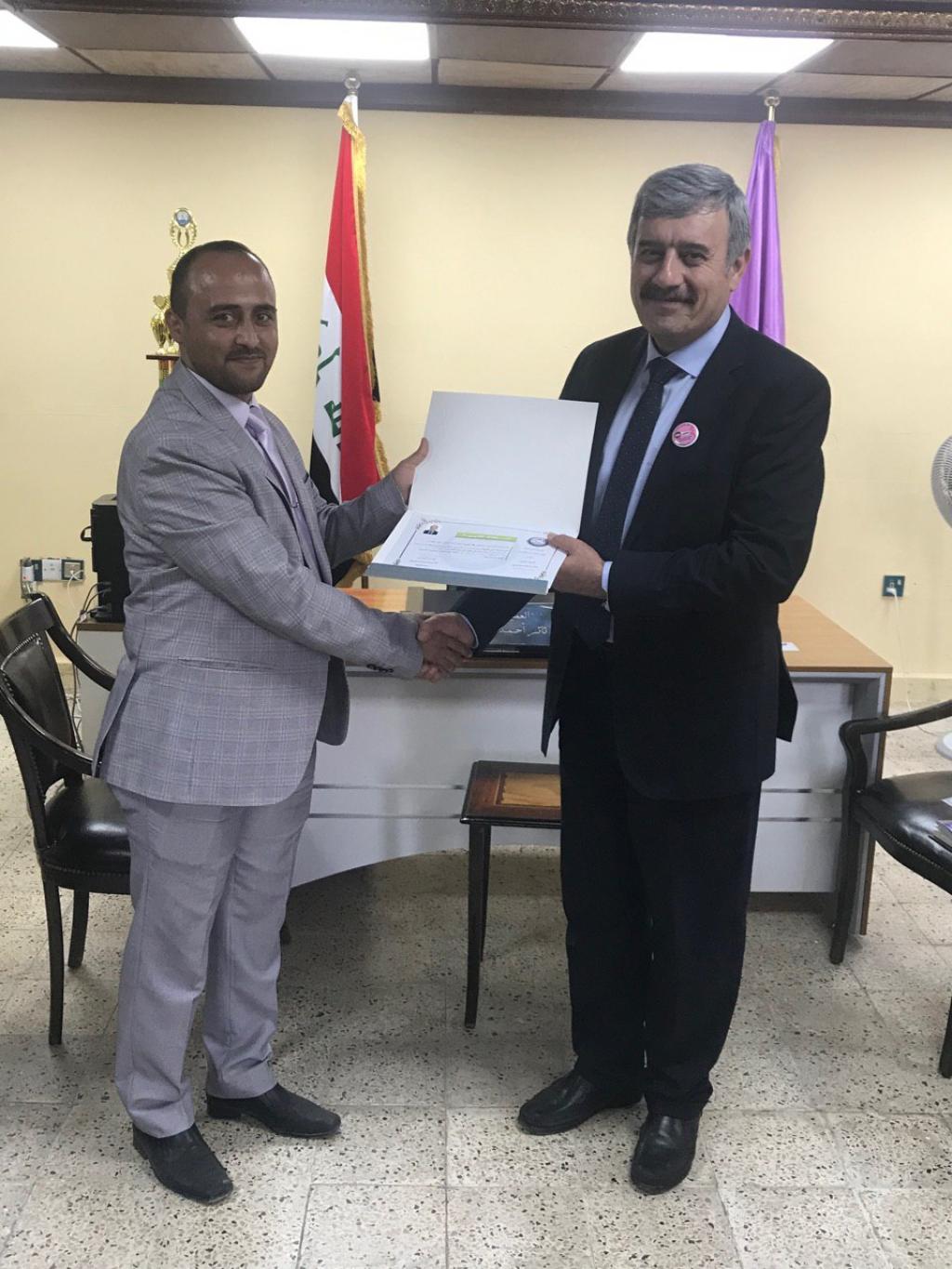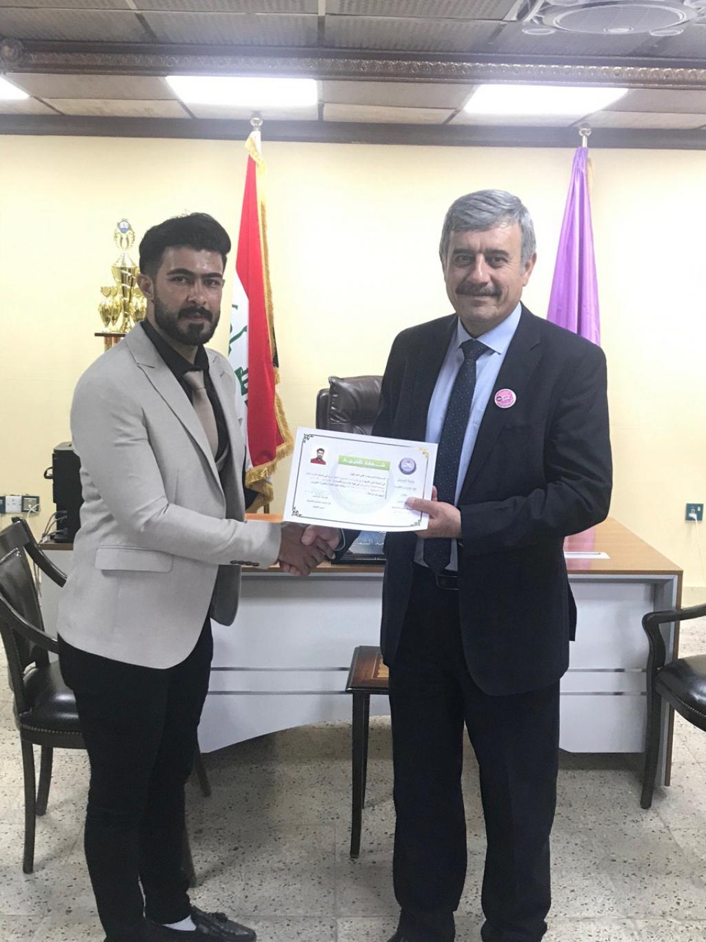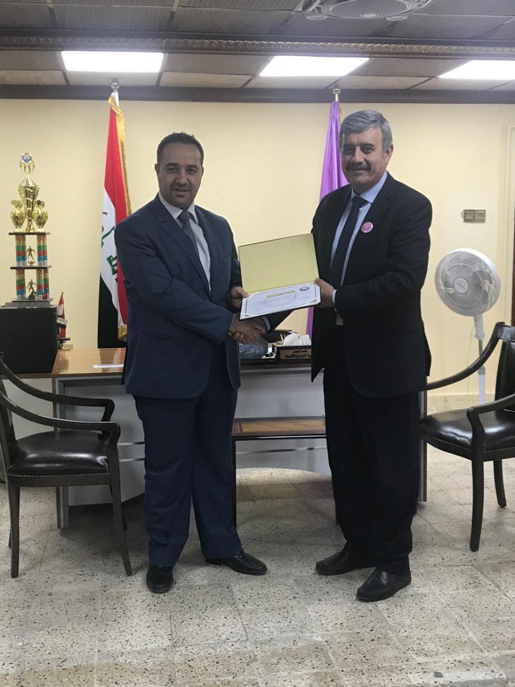 توزيع شهادات تقديرية من قبل السيد عميد الكلية على الفريق التطوعي لقسم ادارة التسويق