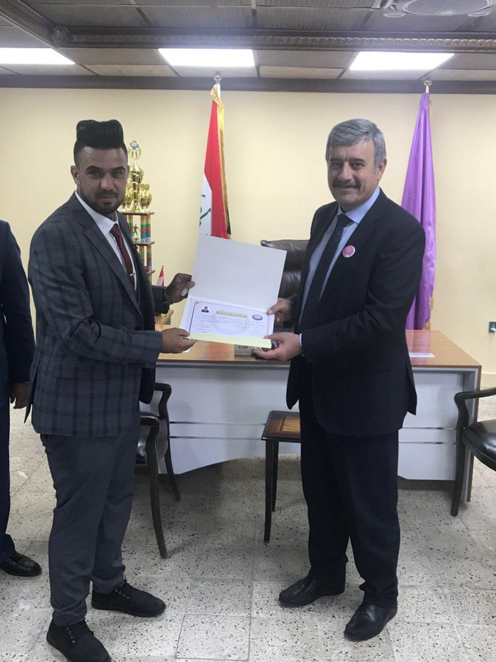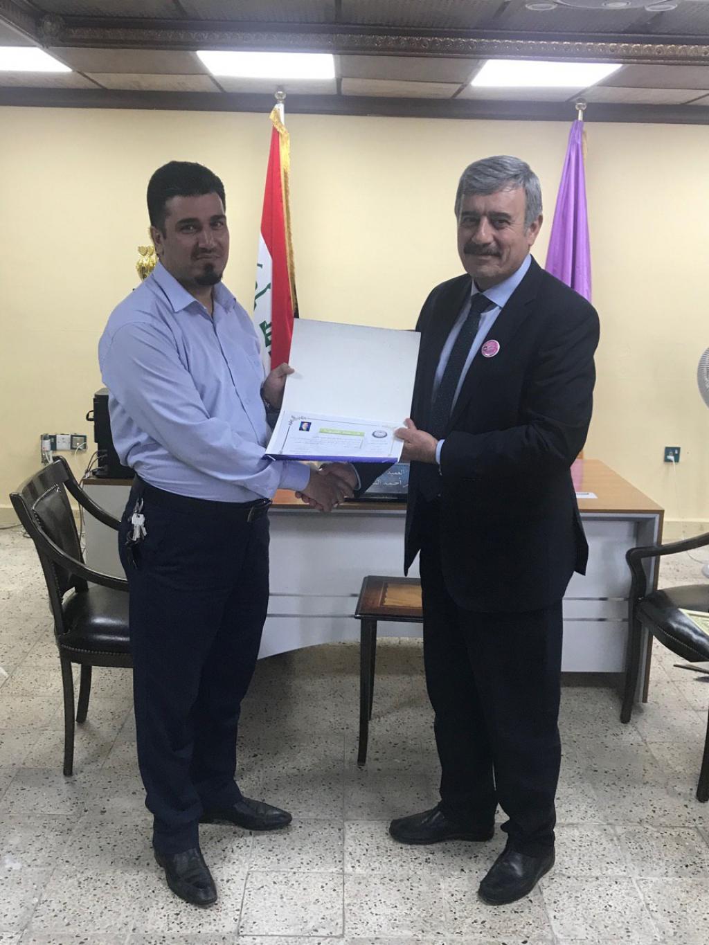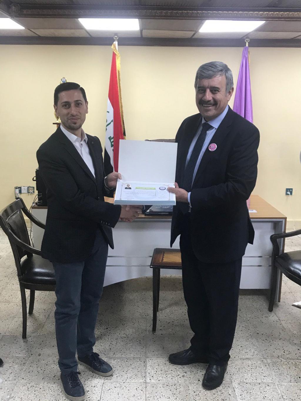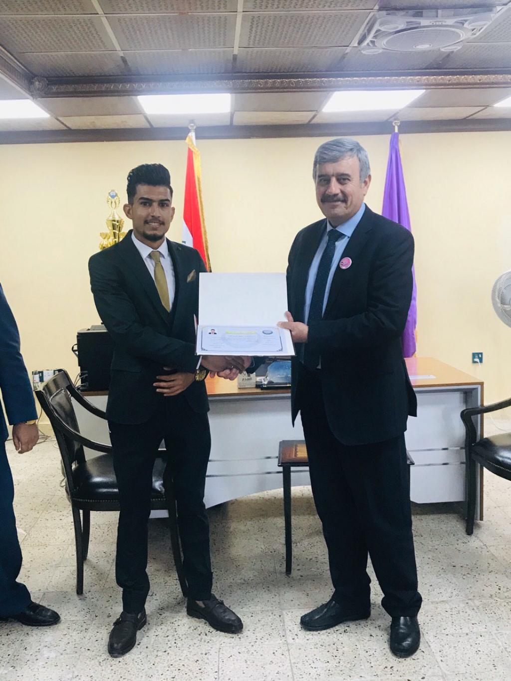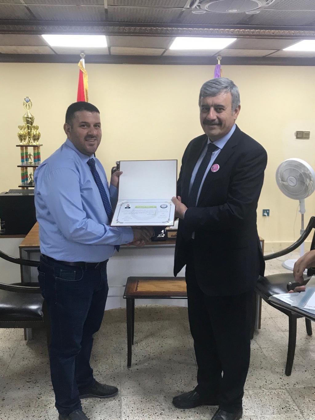توزيع شهادات تقديرية من قبل السيد عميد الكلية على الفريق التطوعي لقسم ادارة التسويق