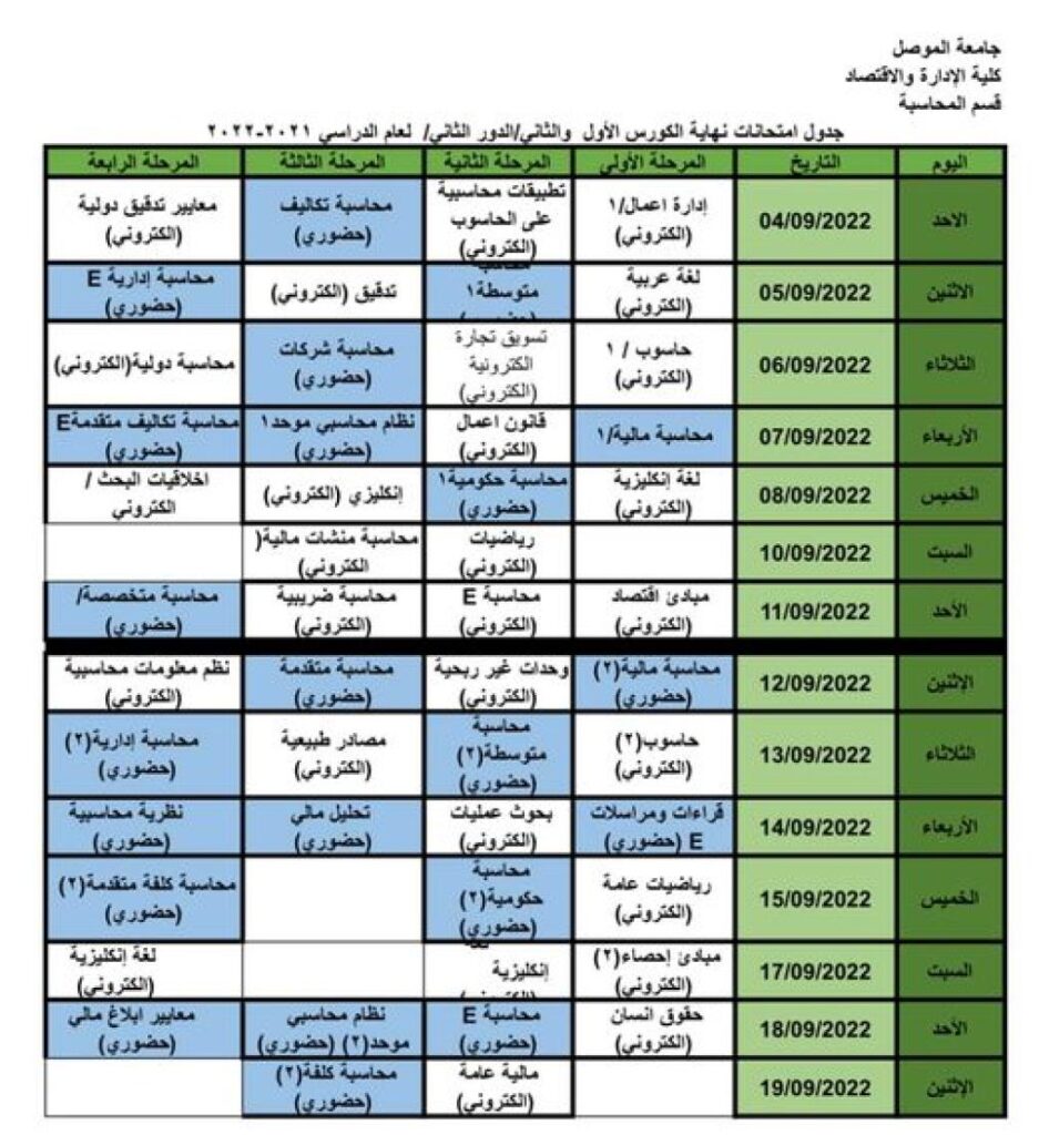 جدول الامتحانات النهائية للدراسات العليا الدور الثاني لقسم ادارة الأعمال للعام الدراسي 2021_2022