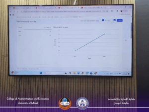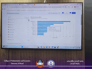 • النشر في مستوعبات Scopus: جرى عرض تفصيلي لمسار البحوث المنشورة في Scopus منذ عام 1949 حتى 2025، مع ملاحظة أن إسهامات جامعة الموصل بدأت منذ تأسيسها سنة 1967، حيث شهدت العقود اللاحقة زيادة مضطردة في عدد البحوث المنشورة، وصولاً إلى إسهامات متميزة لأقسام كلية الإدارة والاقتصاد. وقد جرى استعراض أعداد البحوث بحسب الأقسام العلمية، وأسماء التدريسيين المتميزين بالنشر، مع التأكيد على أهمية التوجه نحو المجلات ذات التصنيف الأعلى (Q1 و Q2).