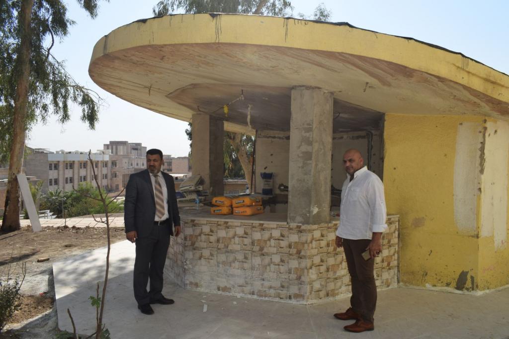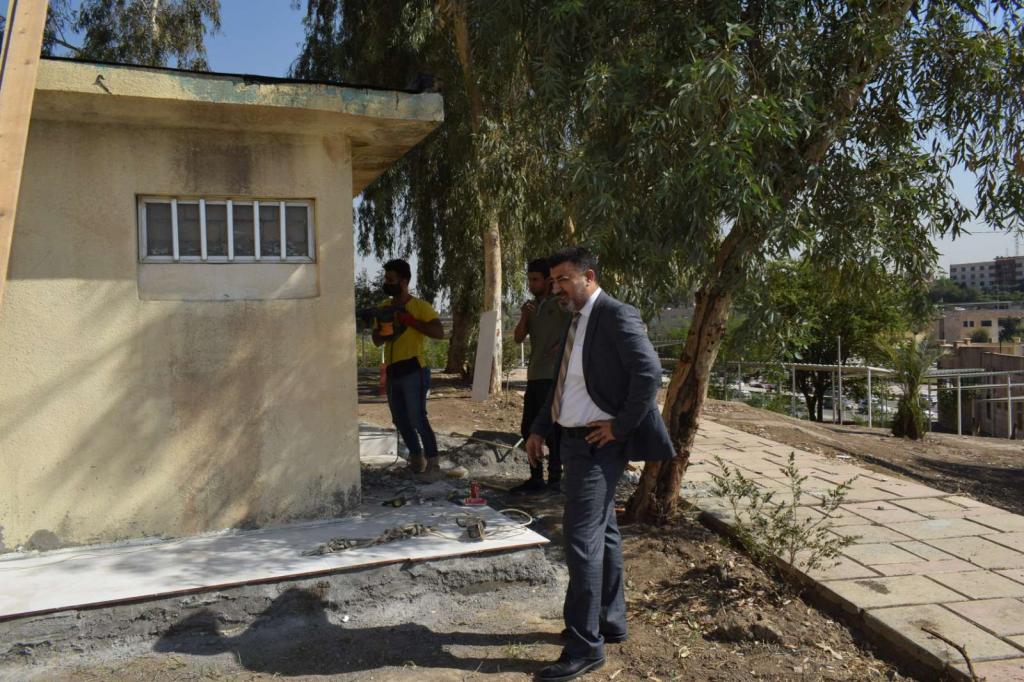 بتوجيه مباشر من السيد عميد الكلية أ.د ثائر احمد سعدون السمان تفقد أ.م.د احمد حسين حسن الجرجري معاون العميد للشؤون الادارية برفقة السيد مدير شعبة الشؤون الإدارية والخدمات أ. محمد العباسي اعمال الصيانة التي تجري في الاقسام العلمية لكليتنا الخميس 21_10_2021 ، واطلع على الاعمال التي تجري في اسطح البنايات وتجديد المغاسل الصحية في الاقسام العلمية واشرف ايضاً على الانتهاء من عمل القاعة الالكترونية في عمادة الكلية وعمل كشك عمادة الكلية وزرع ثيل الحدائق