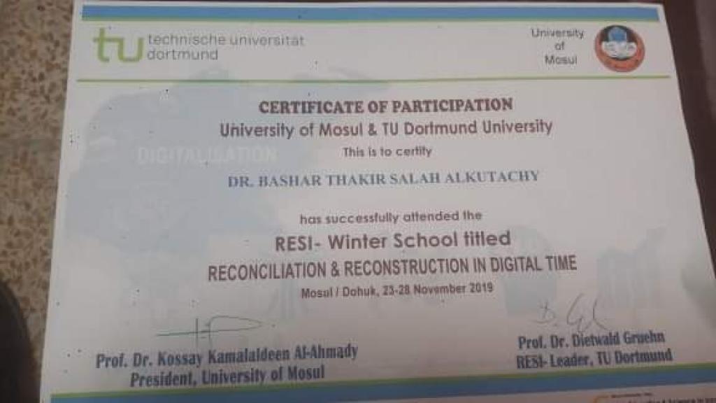 حصول تدريسيين من قسم ادارة التسويق على شهادات مشاركة في اعمال الورشة الدولية الشتوية بين جامعتي الموصل وتي يو دورتموند