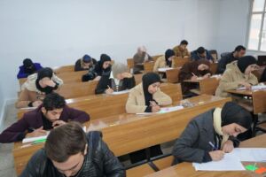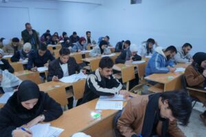 وخلال الجولة، اطلع الوفد على طبيعة الأسئلة الامتحانية، وتنظيم عمل المراقبين، ودور إدارات الأقسام العلمية في الإشراف والمتابعة، إلى جانب تفعيل أنظمة المراقبة بالكاميرات لضمان النزاهة والانضباط الامتحاني عن بُعد.