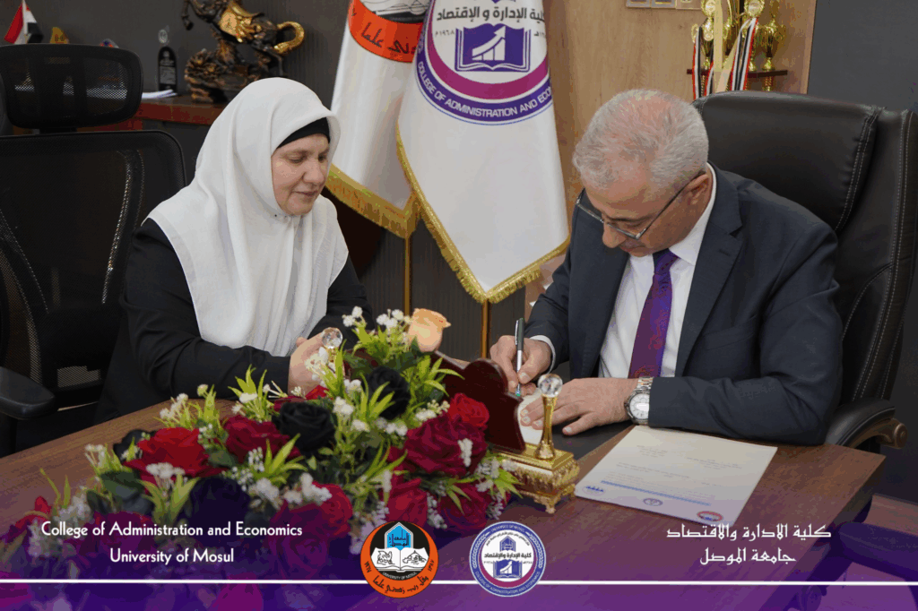 شهدت قاعة قسم إدارة الأعمال في كلية الإدارة والاقتصاد بجامعة الموصل يوم الثلاثاء الموافق (٩ أيلول ٢٠٢٥) مناقشة رسالة الماجستير التي تقدمت بها الطالبة نور هاشم رمضان من قسم الإدارة الصناعية، الموسومة: