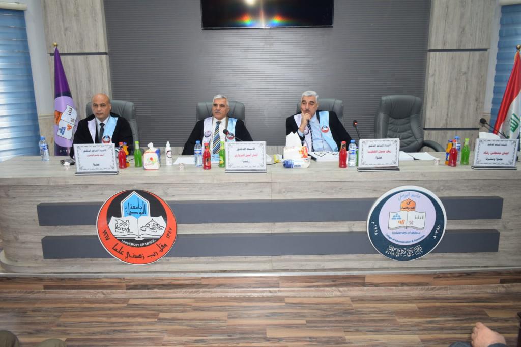رسالة ماجستير في قسم المحاسبة الموسومة " اطار مقترح للممارسات المهنية لمراقبي الحسابات في ظل الأوبئة والكوارث دراسة لآراء مراقبي الحسابات في العراق" في يوم الأربعاء المصادف 27 /10/ 2021"شارع المجموعة الثقافية الرئيسي