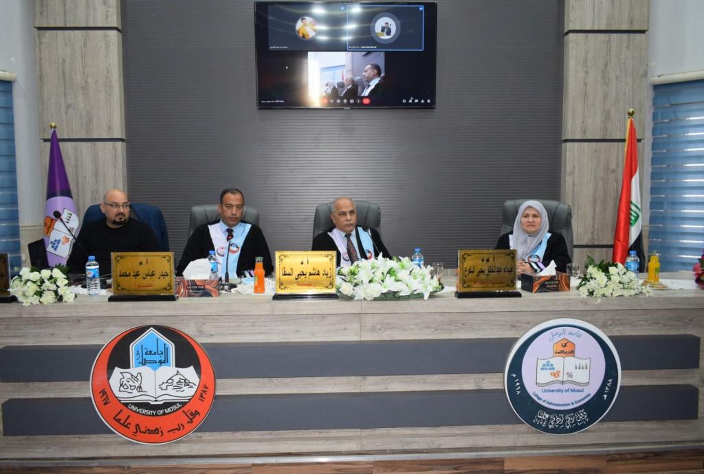 رسالة ماجستير في قسم المحاسبة الموسومة ” تقويم إجراءات التدقيق الشرعي في مصرف جيهان للاستثمار والتمويل الإسلامي على وفق معايير هيئة المحاسبة والتدقيق للمؤسسات المالية الإسلامية في يوم الأربعاء 24 تشرين الثاني 2021
