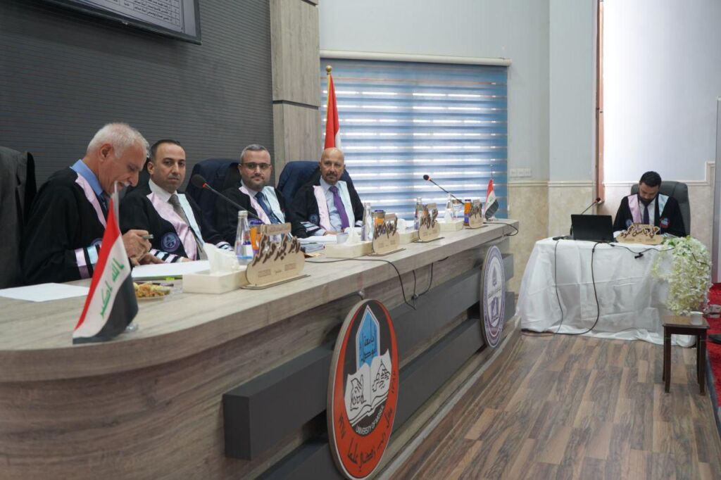 ترأس لجنة المناقشة الأستاذ الدكتور علي عبد الفتاح الشاهر , وعضوية كل من الأستاذ المساعد الدكتور عبد الله محمود عبد الله من جامعة تكريت , و الاستاذ المساعد الدكتور محمد عاصم محمد , وبإشراف وعضوية الأستاذ الدكتور ثائر أحمد سعدون السمان .