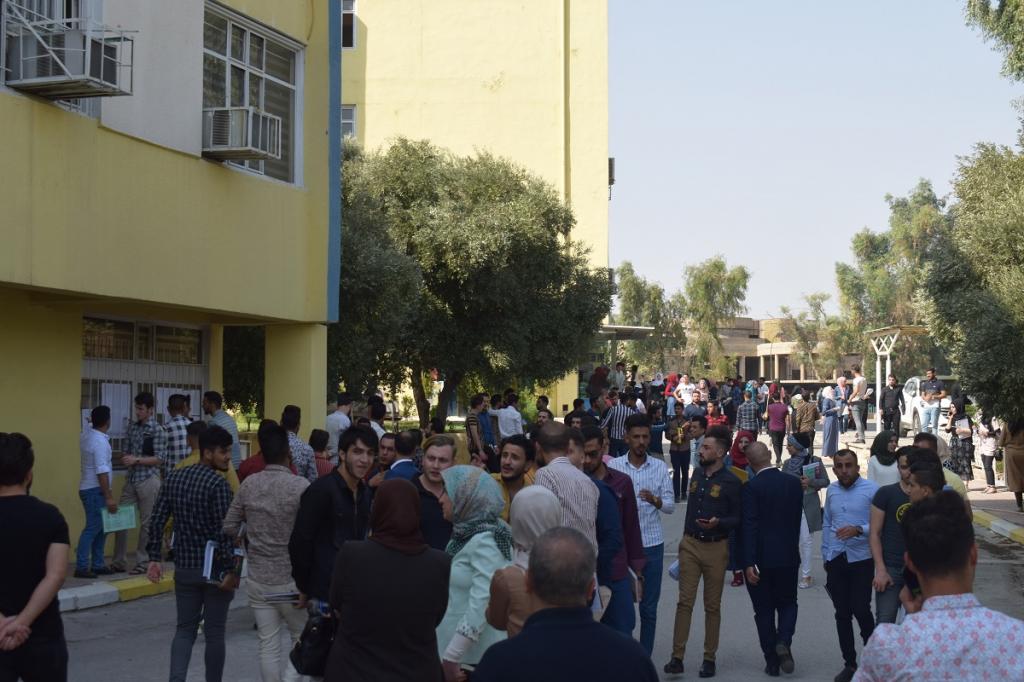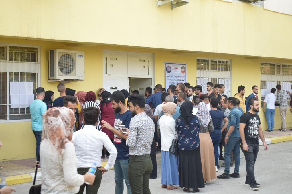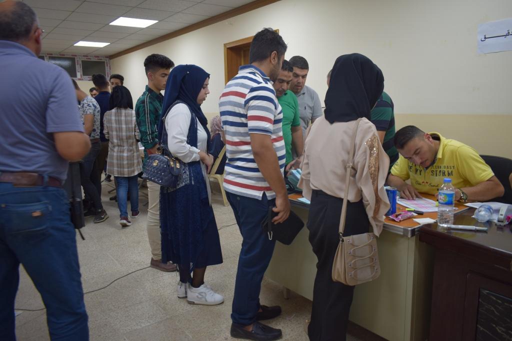 تفقد السيد عميد الكلية الا ستاذ الدكتور ثائر احمد السمان ويرافقة السيد معاون العميد للشؤون العلمية والطلبة الاستاذ المساعد الدكتور وحيد محمود رمو اللجنة الخاصة بأستقبال وتسجيل الطلبة المقبولين في كليتنا للعام الدراسي 2019/2020 واوعز بتوفير الاجواء المناسبة للطلبة لغرض انجاز معاملات قبولهم بالسرعة والدقة في تسجيل الطلبة وقام السيد معاون العميد بتوجيه ومساعدة اعضاء اللجنة والطلبة لتخفيف الزخم الحاصل في عمادة الكلية