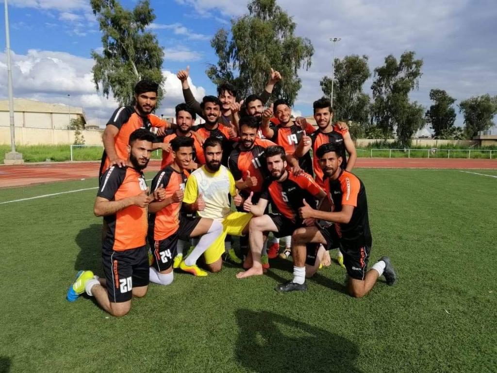 فوز فريق كلية الادارة والاقتصاد بكرة القدم على فريق كلية التربية البدنية وعلوم الرياضة