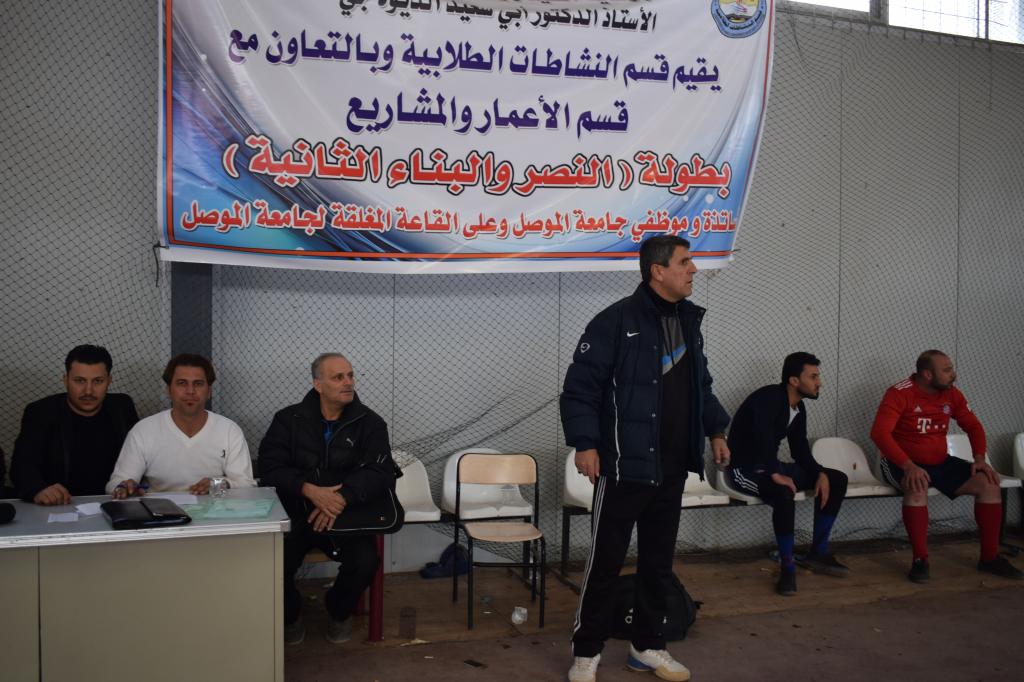 برعاية قسم النشاطات الرياضية أقامة وحدة النشاط الرياضي في كلية علوم الحاسوب والرياضيات بطولة كرة الصالات لآساتذة وموظفي جامعة الموصل وأقيمت مباراة بين فريق كلية الادارة والاقتصاد وفريق كليةالتربية للعلوم الانسانية يوم الاثنين الموافق 21-1-2-2019 والتي انتهت بفوز فريق كليتنا على فريقكليةالتربية للعلوم الانسانية .