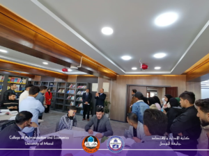 وخلال الفعالية، قام السيد رئيس القسم بزيارة قاعة الاختبار للاطلاع على آلية سيره، حيث اعتمد الطلبة في إجاباتهم على المصادر المتاحة داخل مكتبة الكلية، بما يعزز مهارات البحث والتحليل ويُرسّخ مبادئ التعلم الذاتي.