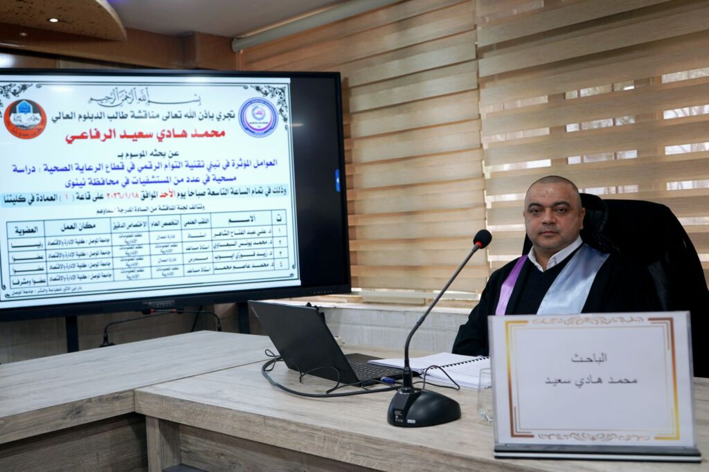 ناقش قسم المحاسبة في كلية الإدارة والاقتصاد – جامعة الموصل، يوم الأحد الموافق 18 كانون الثاني 2026، بحث الدبلوم العالي الموسوم: «مدى الالتزام بمتطلبات توجيه الإنتوساي GOV 9150 من قبل الجهات التدقيقية والرقابية – دراسة تطبيقية»