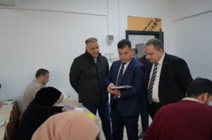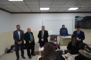 وفي إطار المتابعة الميدانية لسير العملية الامتحانية، أجرى كل من السيد معاون العميد للشؤون العلمية الأستاذ المساعد الدكتور سالم خليل خالد، والسيد معاون العميد للشؤون الإدارية والمالية الدكتور عبدالرحمن زهير عبدالقادر، جولة تفقدية شاملة شملت جميع القاعات الامتحانية في أقسام الكلية، للاطلاع على مدى الالتزام بالتعليمات والضوابط الامتحانية، وتوفير الأجواء الملائمة للطلبة.