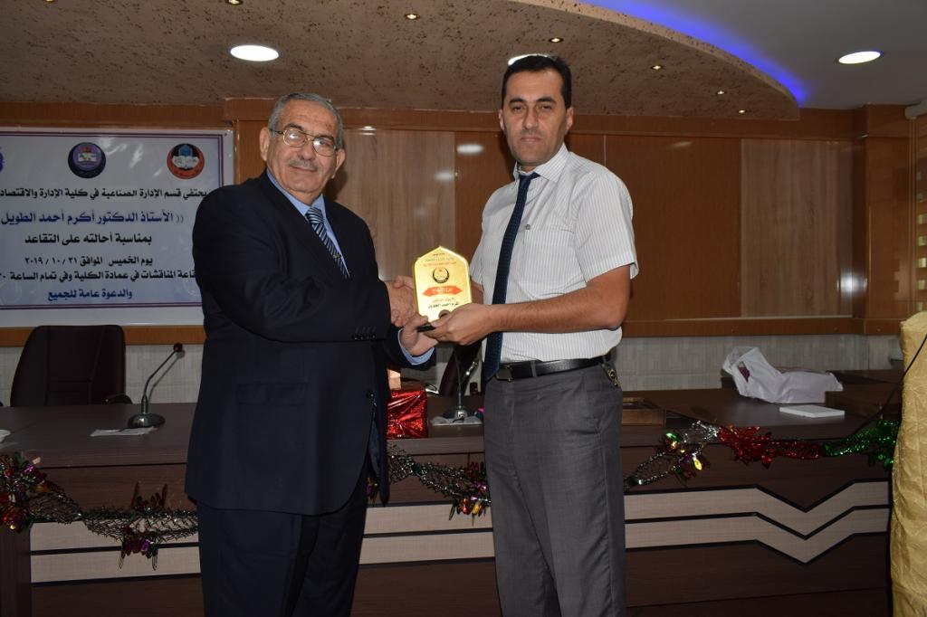 …كلية الادارة والاقتصاد تحتفي بالاستاذ الدكتور اكرم احمد الطويل احد تدريسي كليتنا قسم الادارة الصناعية لاحالته الى التقاعد