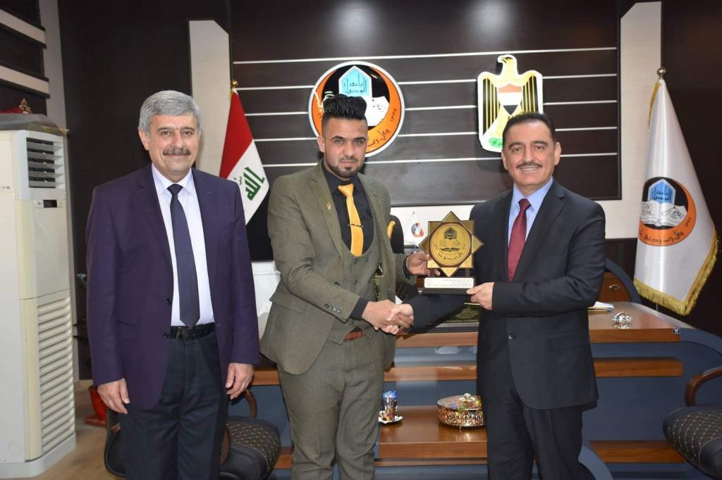 كلية الادارة والاقتصاد متمثلة بالسيد عميد الكلية الاستاذ الدكتور ثائر احمد سعدون السمان و بأساتذتها وموظفيها وطلابها تهدي درع الابداع والتميز للسيد رئيس جامعة الموصل