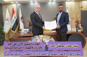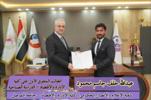 شهادة التميّز: تكريم متفوقي كلية الإدارة والاقتصاد بجامعة الموصل للسنة الدراسية 2023-2024 (الدراسة الصباحية والمسائية)