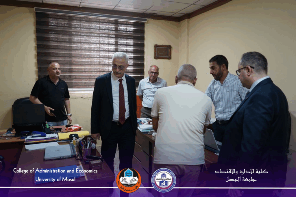 أجرى السيد عميد كلية الإدارة والاقتصاد بجامعة الموصل، الأستاذ الدكتور سنان زهير محمد جميل، يوم الثلاثاء الموافق 29 تموز (يوليو) 2025، جولة ميدانية إلى مبنى قسم إدارة الأعمال، برفقة السيد معاون العميد للشؤون الإدارية والمالية، والسيد مدير شعبة الخدمات الإدارية.