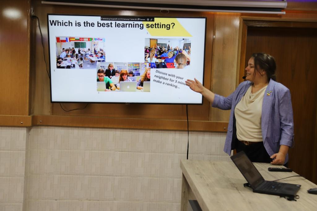 القت البرفسورة د هايك ويندت من جامعة كراز النمساوية محاضرة بعنوان طرق التدريس في العلوم الادارية والاقتصادية وذلك ضمن التعاون العلمي لجامعة الموصل مع الجامعات العالميةوتعتبر هذه المحاضرة جزء من مشروع تطوير التعليم في العراق مع جامعتي دورتموند الالمانية وكراز النمساوية فضلا عن انه سيكون هناك سلسة من المحاضرات الحضورية في كليات اخرى التي تدعم الاساليب الحديثة في التعليم .