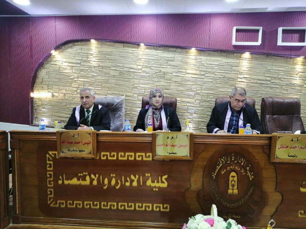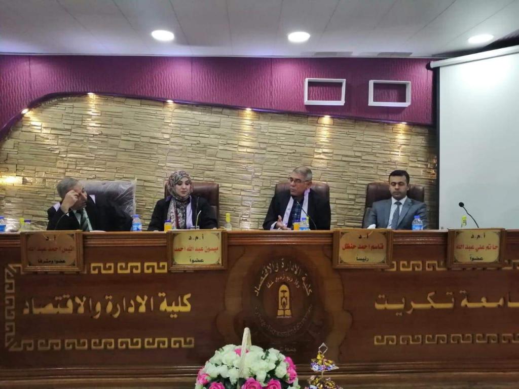 مشاركة أحدى تدريسيات كليتنا قسم ادارة الاعمال كاحد اعضاء لجنة مناقشة رسالة ماجستير في قسم ادارة الاعمال/ كلية الادارة والاقتصاد / جامعة تكريت