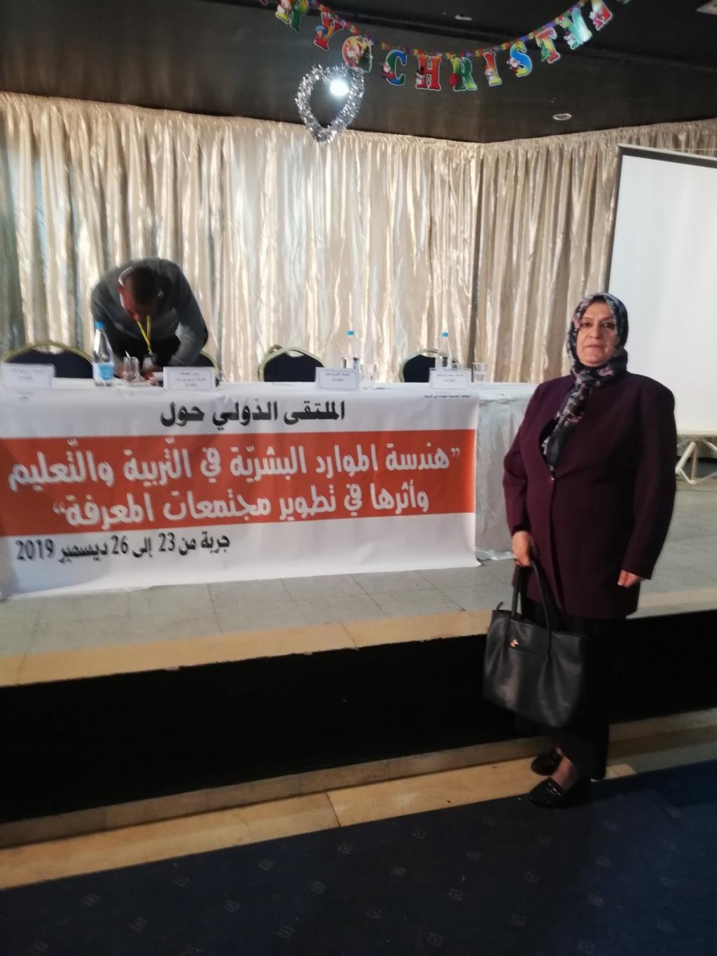 مشاركة احدى تدريسيات كليتنا قسم ادارة التسويق في الملتقى الدولي حول هندسة الموارد البشرية في التربية والتعليم واثرها في تطوير مجتمعات المعرفة في تونس