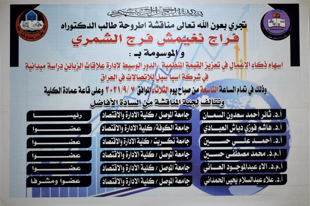 مناقشة اطروحة دكتوراه في ادارة الاعمال/ قسم ادارة الاعمال