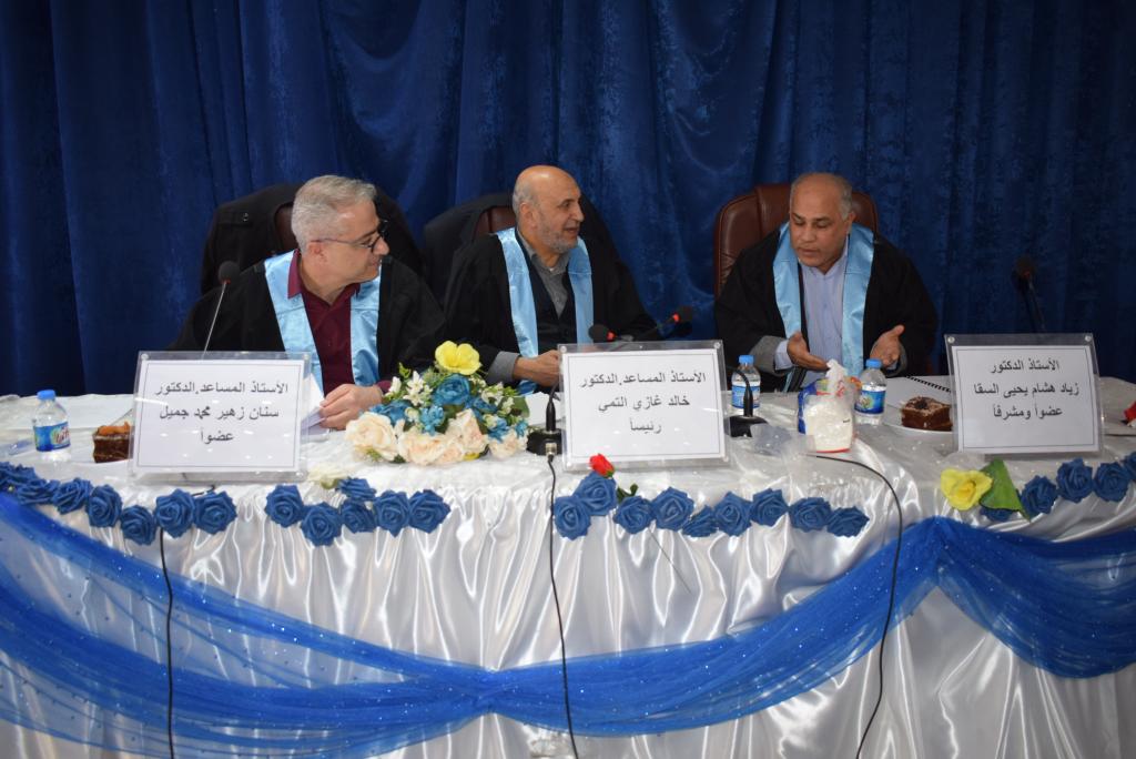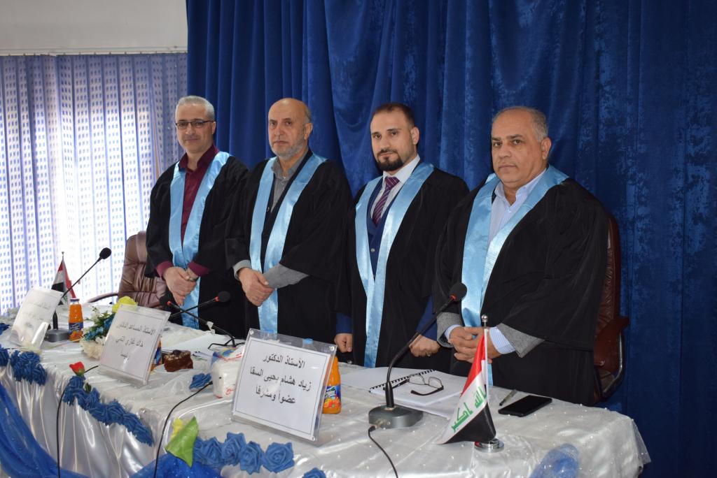 أ.د زياد هاشم يحيى السقا عضوا ومشرفاواوصت اللجنة بمنحه شهادة الدبلوم العالي في تدقيق ومراجعة الحسابات بعد اجراء التعديلات اللازمة واكمال متطلبات منح الشهادة” مع تمنياتنا للطالب بالموفقية والنجاح “الاعلام