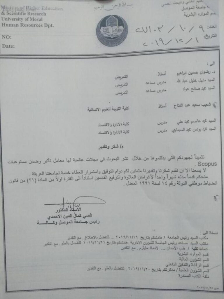 أ.د زياد هاشم يحيى السقا عضوا ومشرفاواوصت اللجنة بمنحه شهادة الدبلوم العالي في تدقيق ومراجعة الحسابات بعد اجراء التعديلات اللازمة واكمال متطلبات منح الشهادة” مع تمنياتنا للطالب بالموفقية والنجاح “الاعلام
